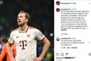 体育资讯4月17日讯 欧冠1/4决赛,拜仁总比分3-4不敌国米出局,不久前,拜仁前锋凯恩更新了社交媒体。