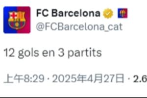 巴萨本赛季三杀皇马&总比分12-4,巴萨官推:3场比赛12球